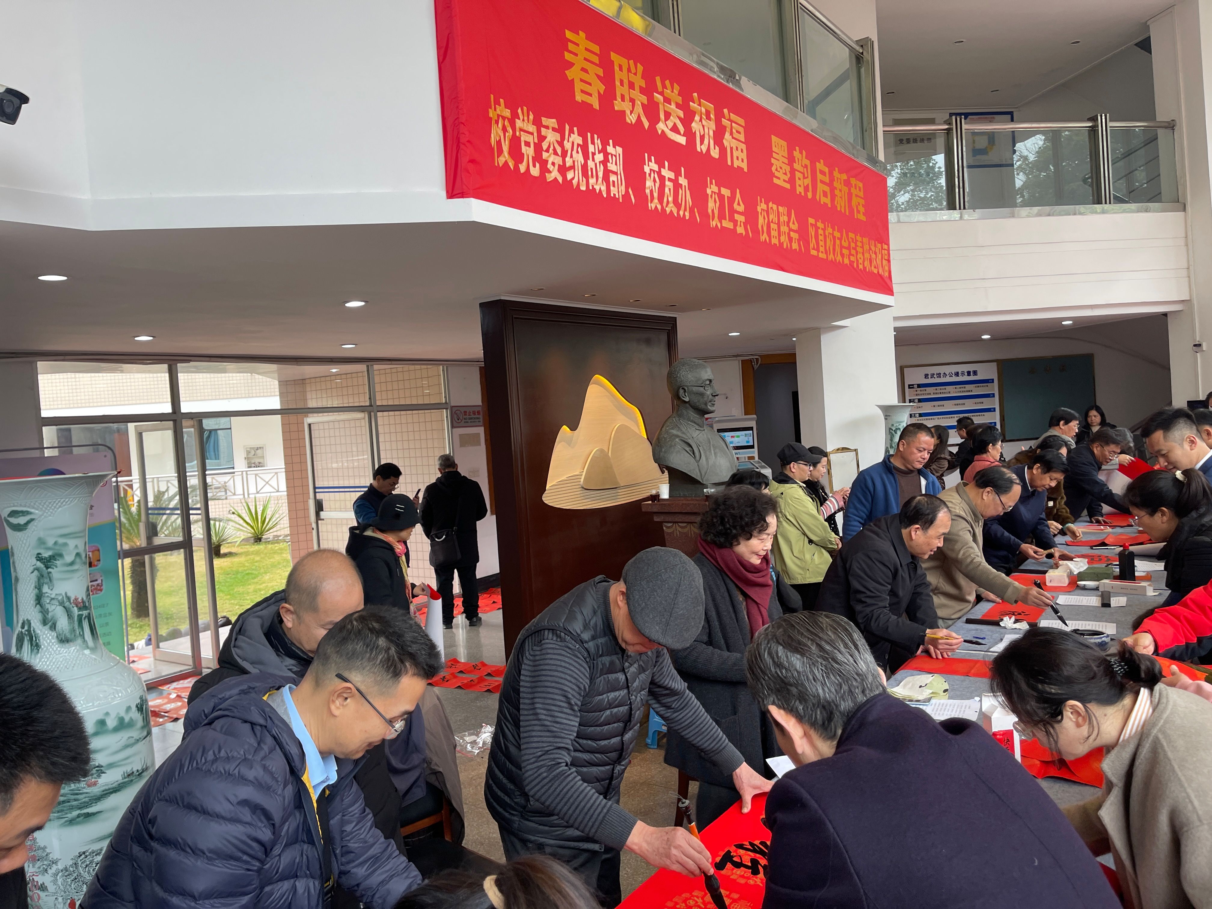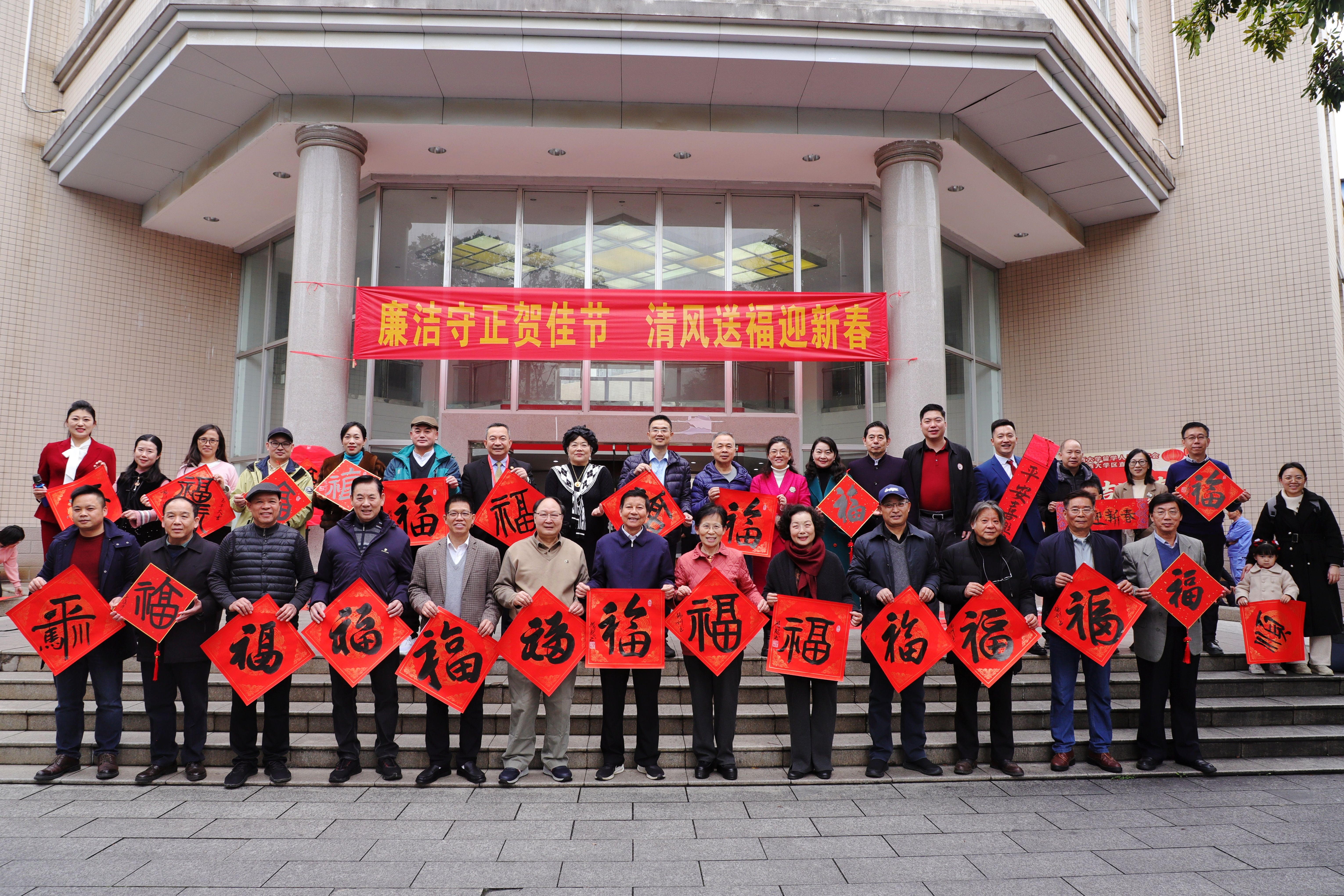 2月11日,由广西大学党委统战部、校工会主办,校留学人员联谊会、区直校友会承办的“春联送祝福 墨韵启新程”活动在君武馆一楼大厅举行。校党委副书记宁旭初,广西大学区直校友会会长、自治区科协原党组书记甘向群出席活动并致辞。广西欧美同学会副会长、广西大学留联会会长、原副校长冯家勋,学校党委常委、校长助理、统战部部长姚作芳出席活动。