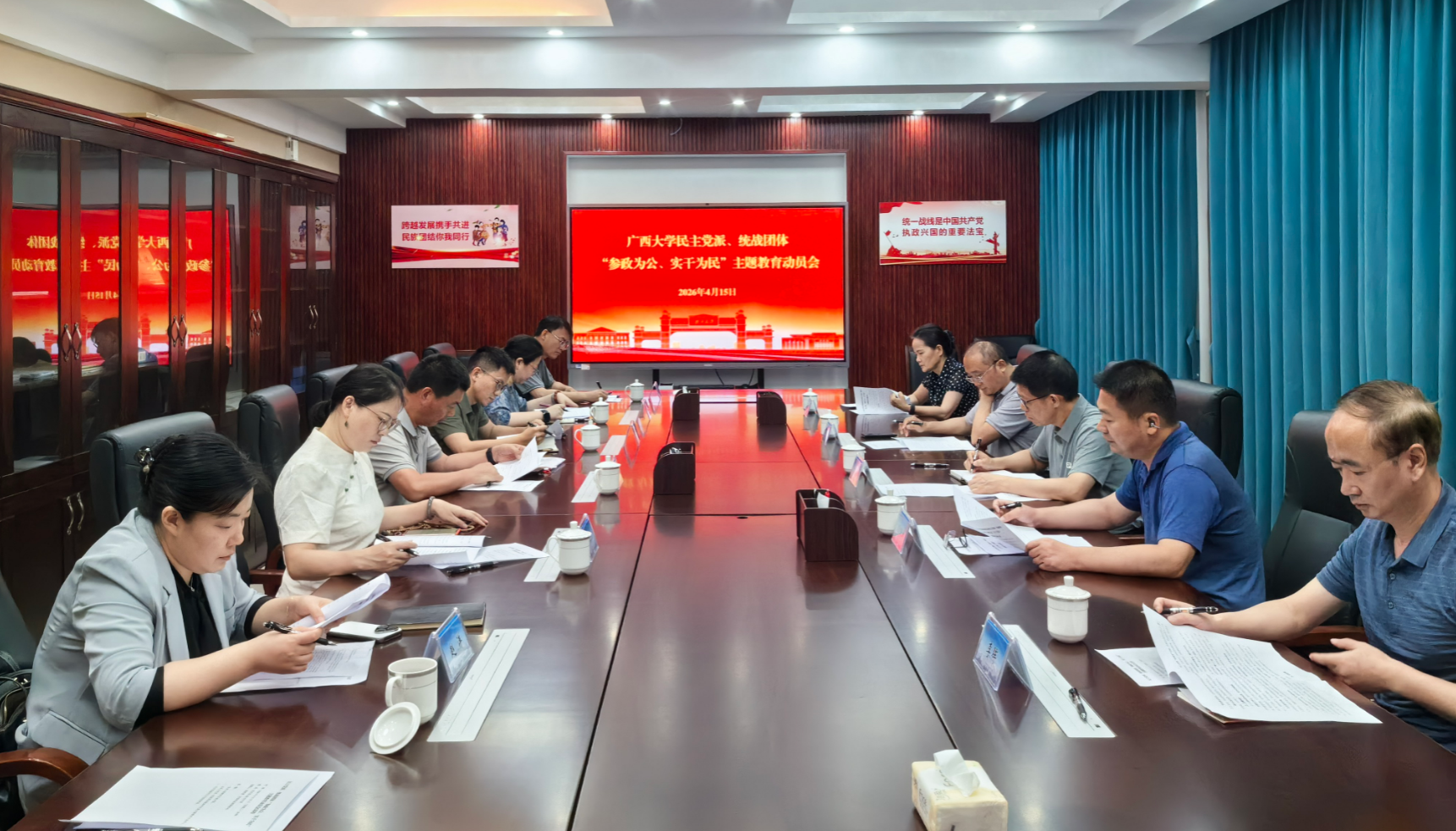 4月15日,我校民主党派、统战团体“参政为公、实干为民”主题教育动员会在君武馆206会议室召开。校党委副书记宁旭初出席会议并作动员讲话,党委统战部副部长閤明勇主持会议。